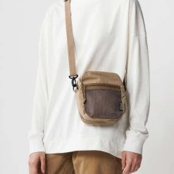 Gramicci army green ripstop wallet. Two zipper compartments. Mesh outer layer. Use a carabiner to hook to a belt loop or inside a bag to secure. Made in China.